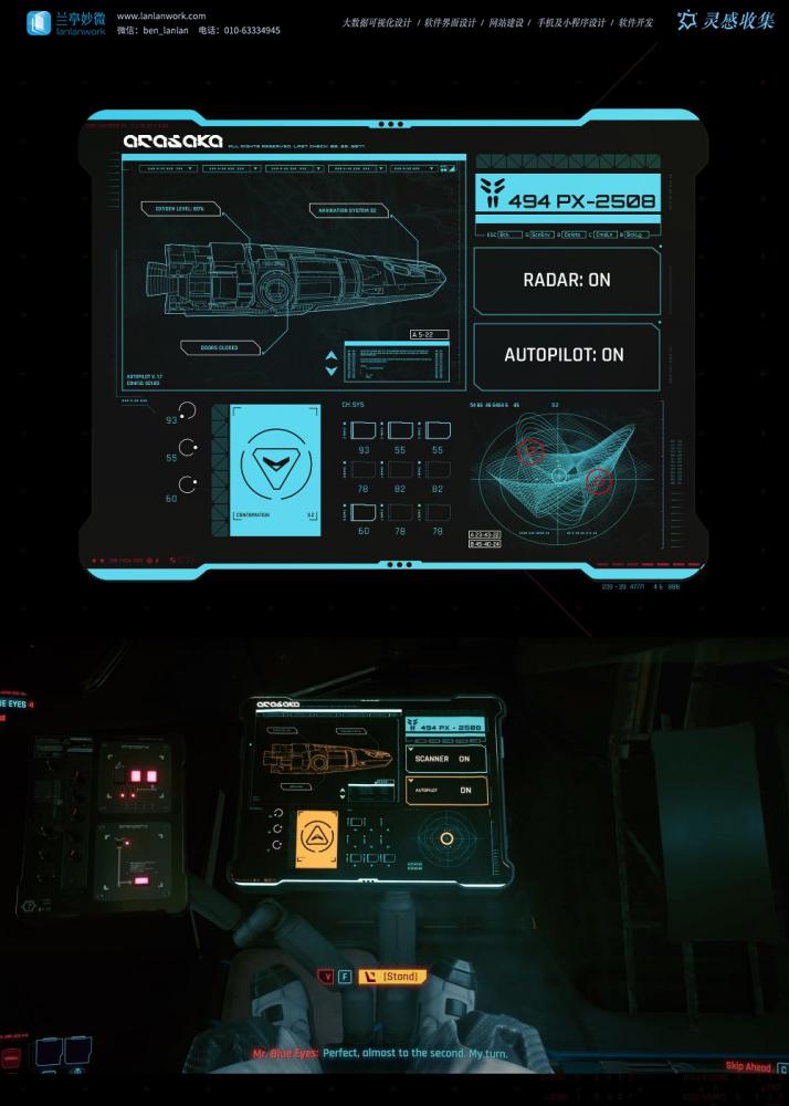 - 擬物化與抽象化的平衡:優(yōu)秀的科幻 UI 在抽象的數(shù)字邏輯和可理解的物理世界之間找到平衡。例如,《賽博朋克 2077》中的界面充滿了賽博朋克的粗糲感和故障美學(xué),而《星際迷航》的 LCARS 界面則以其流暢、有機的曲線,展現(xiàn)了一個高度發(fā)達(dá)、和諧的未來文明。
