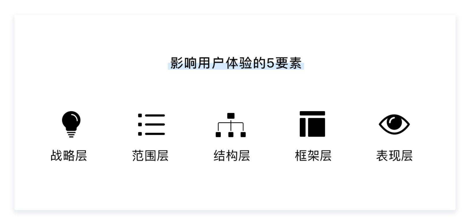 無論 UX 設計的形式如何變化,其核心框架始終圍繞《用戶體驗要素》提出的戰略層、范圍層、結構層、框架層、表現層五個層級展開。這五個層級從抽象到具體、從概念到落地,構成了 UX 設計的完整邏輯體系,既是分析產品的工具,也是從 0 到 1 打造產品的核心方法論。