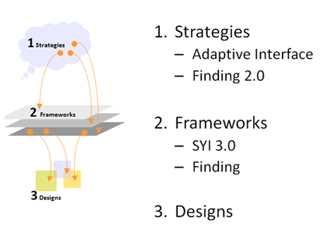 你可以從中看到自己的影響力到哪,一個設計師如果是精于designs,那你是個很好的設計助理,如果能能對frameworks提出成熟方案,那應該是個很合格的交互設計師了,如果你對strategies有影響,甚至有一定決策權,那恭喜你,你理所當然應該得到所有HCIer的尊重。
