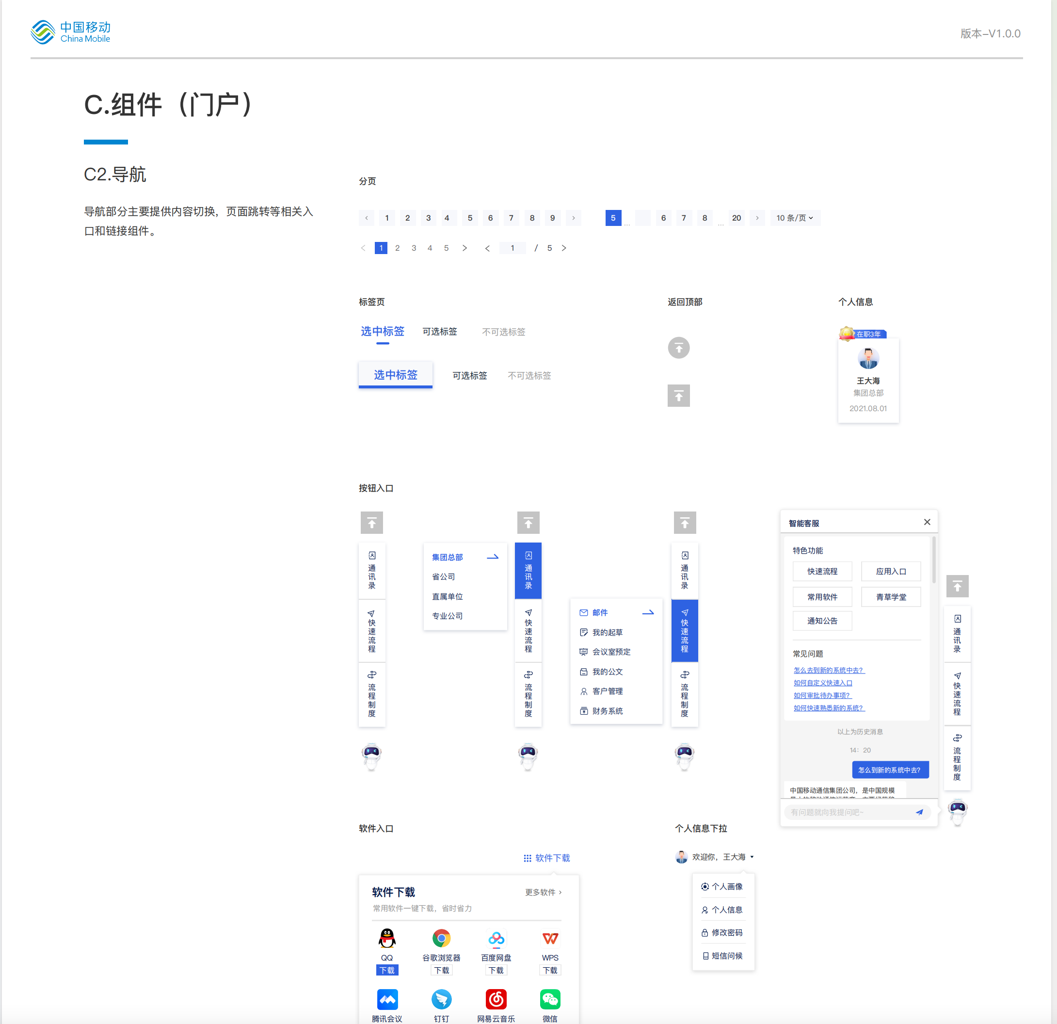 以下是藍藍設計(北京蘭亭妙微)給中國移動研究院設計三套軟件,制作的部分UI規范。