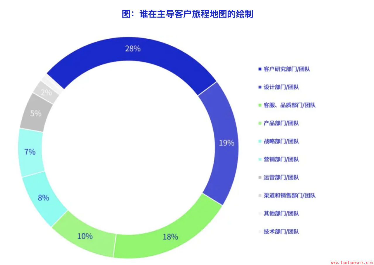 由客戶研究部門和團隊主導客戶旅程的繪制時目前的最常見的模式,其次是設計部門,以及客服、品質部門主導。但產品、戰略、營銷、銷售部門主導的情況也一定的比例,這也說明目前開展客戶旅程應用的企業,其目的存在多樣性。不同部門來主導,其方法和應用上也會存在差異。