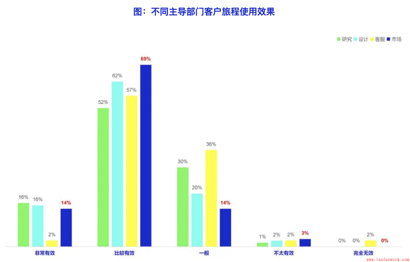 雖然目前由市場部門(包括營銷、銷售和品牌部門)主導的比例較少,但由市場部門主導客戶旅程應用獲得效果明顯好于其他部門主導的情況,由客服部門主導的效果低于其他部門。這與MyCustomer在2018年在歐美的研究結論相反,這可能說明市場部門在客戶體驗領域的主導權在逐步上升。