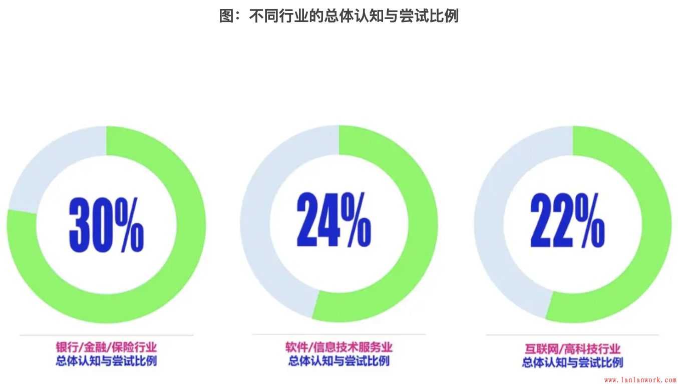 不同類型的企業,在客戶旅程的認知和應用程度上也表現出較大差異:2C企業的應用程度明顯高于2B類型的企業,總體認知和應用比例分別為30%和20%。大型企業也明顯高出中小型企業,分別為29%、22%和19%。客戶旅程是一個相對比較復雜的系統性方法,真正的應用需要人員、資金等各項資源的投入,大型企業更具備優勢。相比而言,小型企業的在。分行業來看,認知和應用程度最高是銀行/金融/保險行業(30%),一方面是由于這個行業的本身的客戶決策流程長、金額大、風險大,另外一方面也是由于這個行業的利潤較高,企業有相對較為充足的資源進行投入。