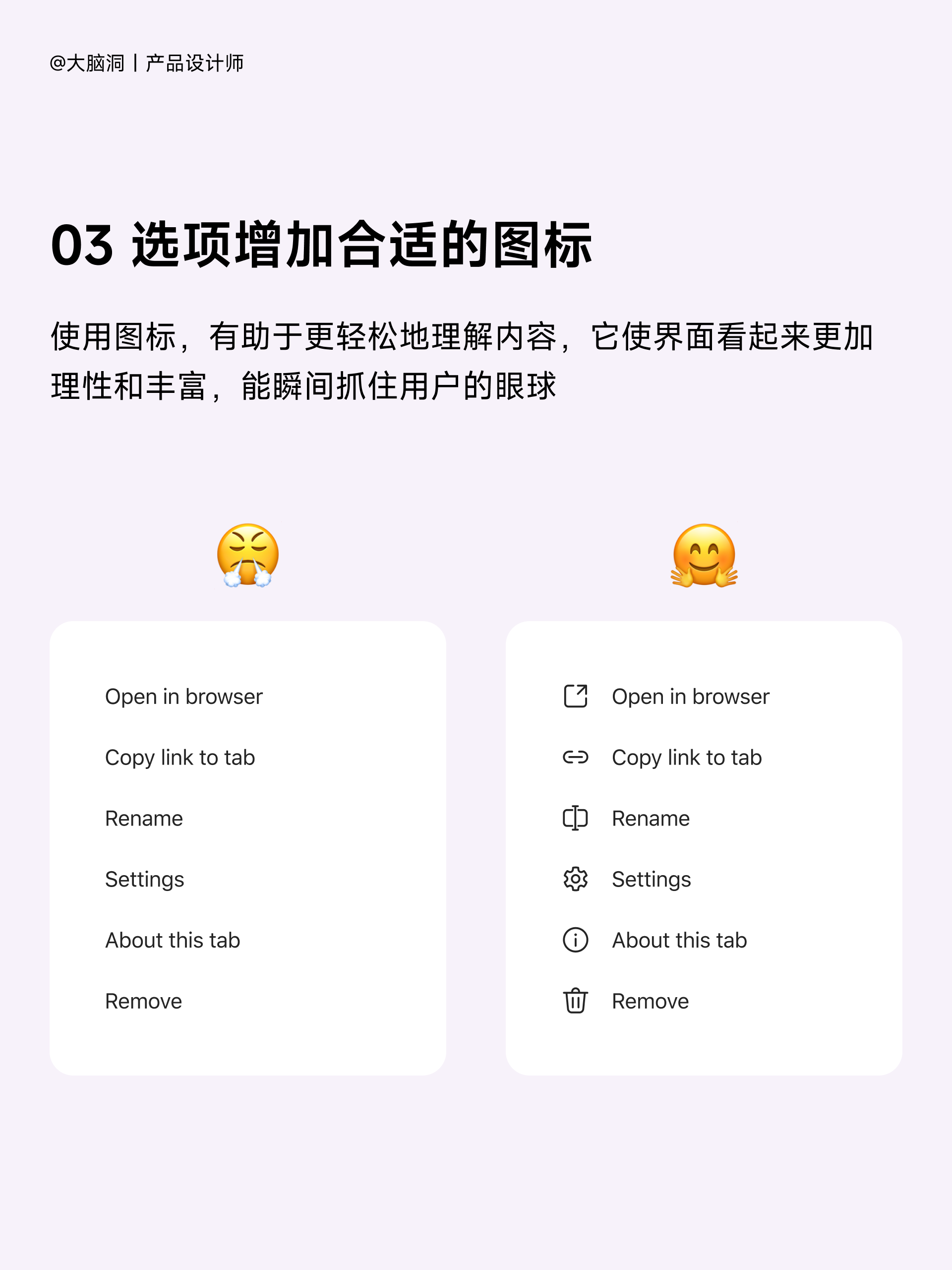 3、控制一級導(dǎo)航菜單數(shù)量,以免視覺溢出過多。保證文本易于辨識,使用已于理解的圖標(biāo),減少重復(fù)文字,精簡菜單名稱。